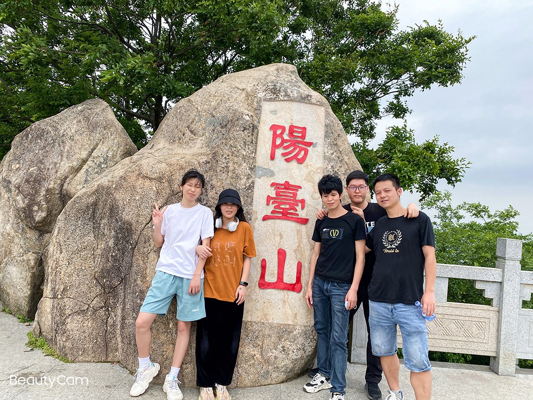 一路歡聲笑語不到 2小時就登上了這座587米高的山峰。爬到山頂時大家都精疲力盡,但是大家都還是以最好的狀態(tài)享受爬上山后的成功。山頂微風拂面,地面一覽無余,置身其中心境頓時豁然,消除登山帶來的疲倦。